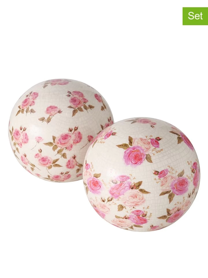 2-delige Set: Decoratieve Ballen “Roselia” Wit/roze – Ø 20 Cm